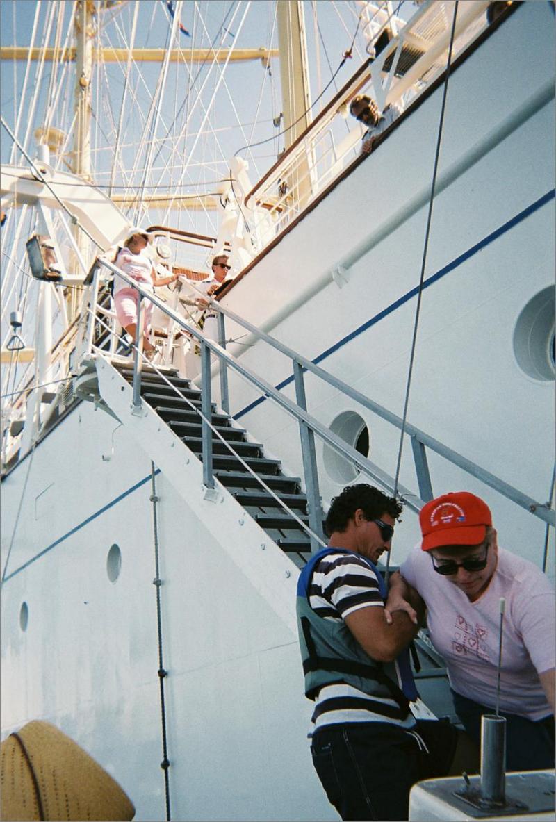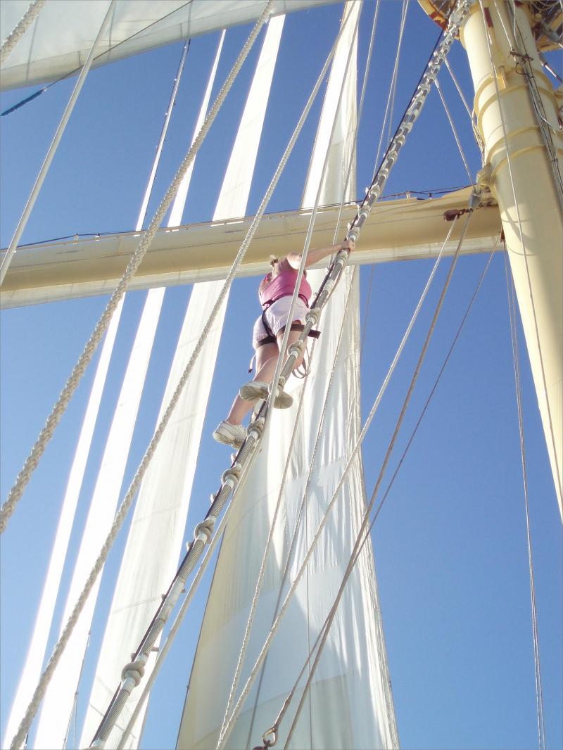 Melinda, our new friend from London, was very brave climbing the rope ladder to the mast. She didn't make it to the top, but gave it a good try. There was no way I was going up on that rickety thing.