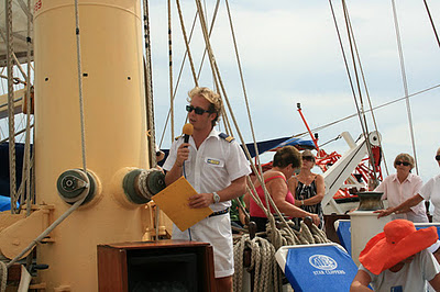 Johnny Depp wasn't on board but Captain Kraaling did have a beard and an earring. He was a very nice man though who sailed a reproduction of a 1700s Swedish square sail clipper around Africa a couple of years ago. Captain Sparrow would be jealous because Kraalings ship, the Gothenburg, seriously looks like a pirate ship. It was built with original materials including a layer of horse hair in the hull.