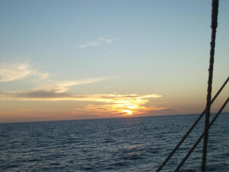 We used wind power each evening although we never had full sails up---they were having trouble with two of the square sails. In the foreground here are our new friends Grandma Sharon and 10-year-old Jack.
