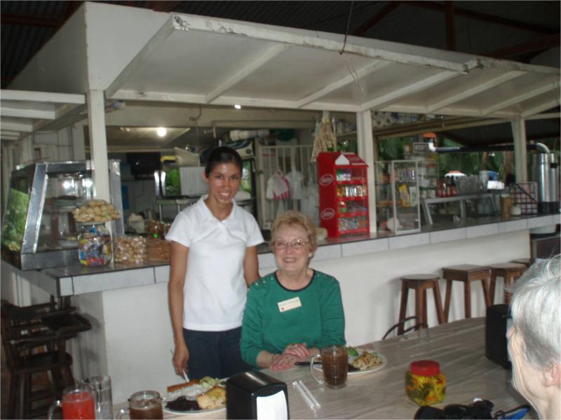 Here is mom in one of the open-air restaurants where we had lunch. I usually had rice, beans, fried ripe banana, and coffee. Delicious! Neither of us got sick either!