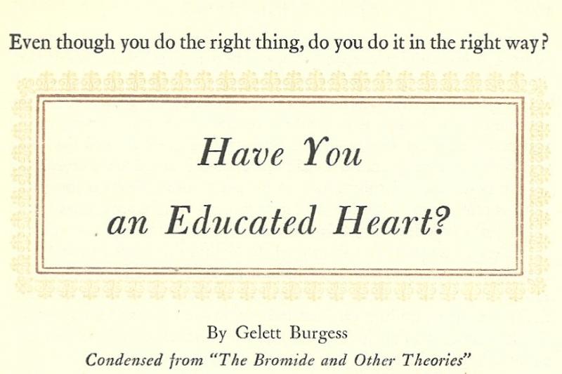 Today we tend to think of Bohemians as casual and perhaps even counter culture. I find it interesting that Burgess, an original Bohemain, considers polite kindness to be a virtue.